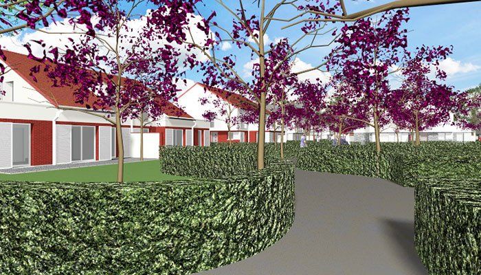La première idée qui a fusé, fut de ne pas laisser penser à une opération de logements groupés, mais plutôt de montrer un ensemble de maisons intégrées dans l'environnement existant.